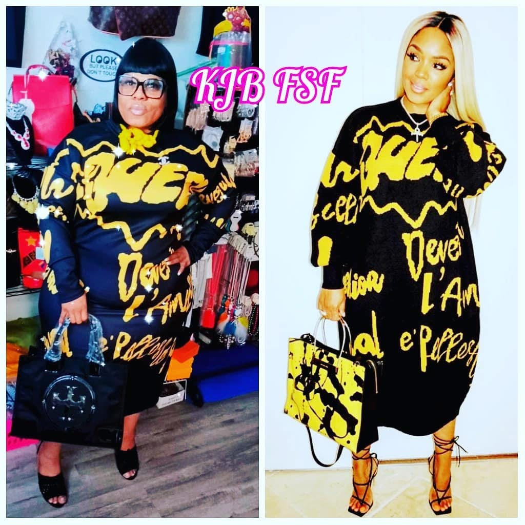 Be the queen of fashion with our Queen sweater dress! This stunning yellow and black dress exudes confidence and style. Made with cozy sweater material, you'll stay warm and fashionable all day long. Rule the day with this must-have dress.