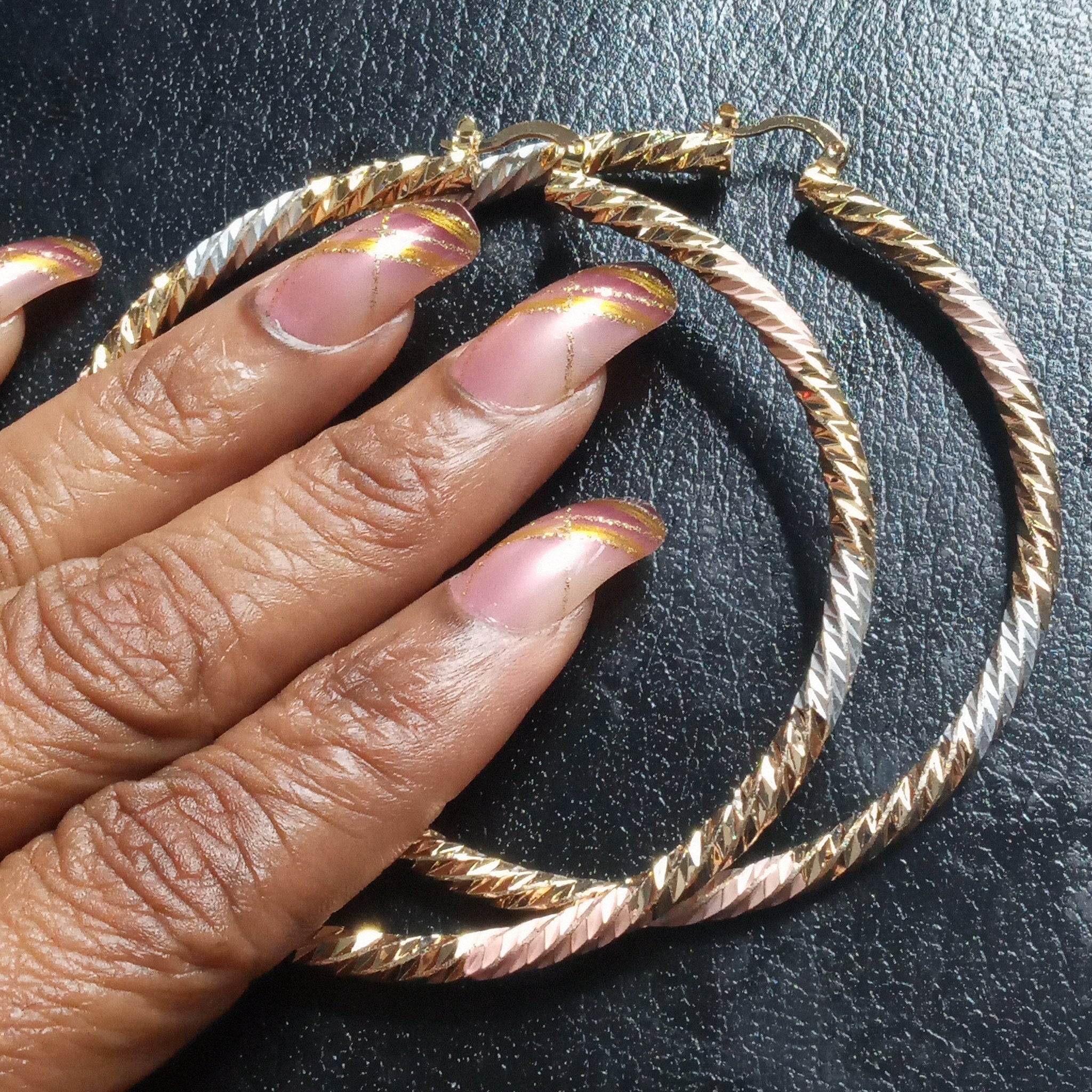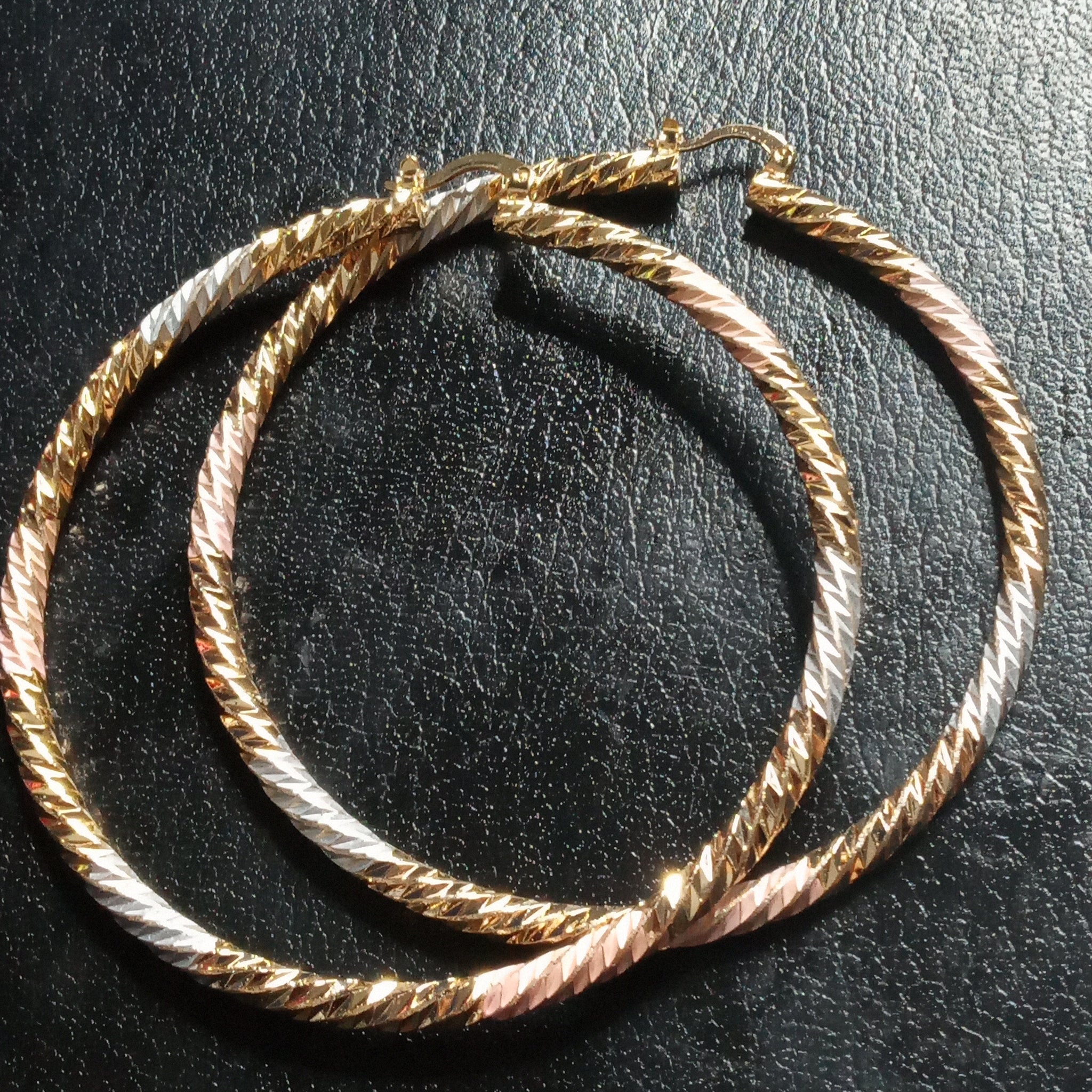 18K filled tri hoops diamond cut. These hoops are not your average, this earring makes the outfit.